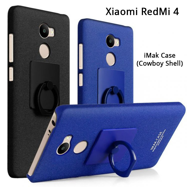 Чехол-накладка iMak (серия Cowboy Shell) + плёнка для смартфона Xiaomi RedMi 4, бампер, шероховатый пластик, поликарбонат, защитная плёнка, съёмное кольцо для пальца, крючок для крепления в автомобиле, чёрный, синий, Киев
