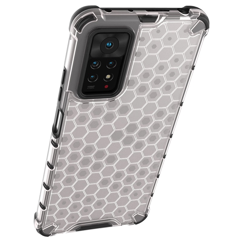 Чехол-накладка с рисунком в виде сот для смартфона Xiaomi Redmi Note 11 Pro / Xiaomi Redmi Note 11 Pro 5G, противоударный бампер, задняя панель из поликарбоната, рама из термополиуретана, сочетание жёсткости с гибкостью, дополнительная защита углов смартфона «воздушными подушками», накладка на кнопки регулировки громкости, чёрный + прозрачный, чёрный + серый, чёрный + красный, чёрный + синий, чёрный + зелёный, Киев