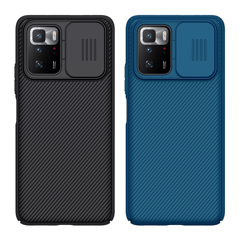Чехол с защитной шторкой для камеры Nillkin CamShield для смартфона Xiaomi Poco X3 GT / Xiaomi Redmi Note 10 Pro 5G (China), противоударный бампер, рифлёный пластик, шторка-слайдер для защиты камеры от механических воздействий, чёрный, синий, Киев