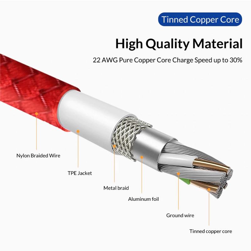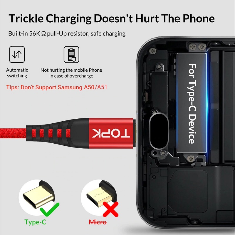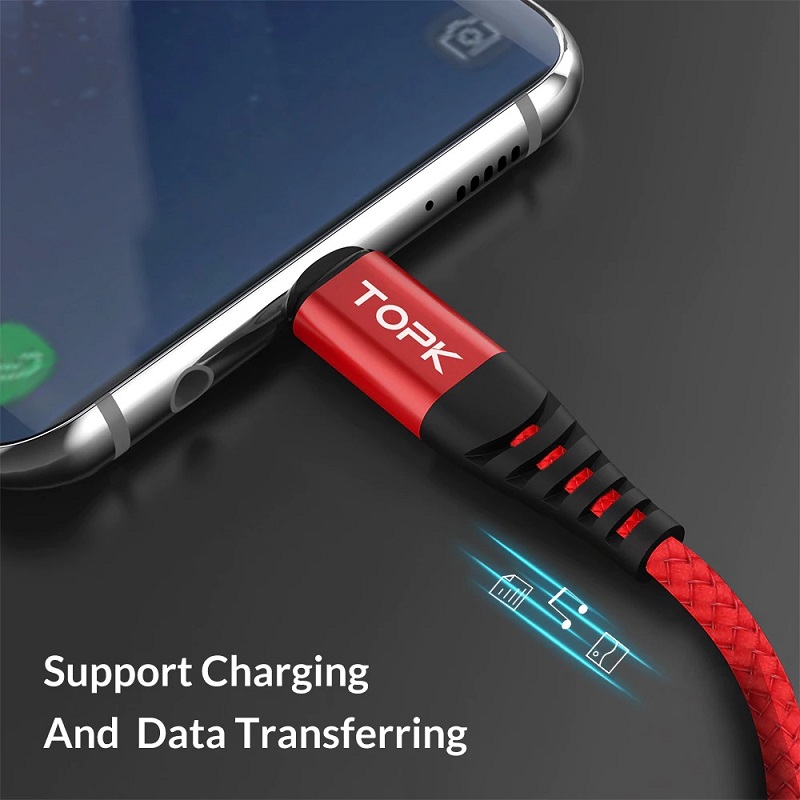 Кабель TOPK (USB – USB Type-C) для зарядки и передачи данных, луженая медь, термопластичный эластомер и нейлоновая оплётка, разъёмы из алюминиевого сплава, поддерживает быструю зарядку Qualcomm Quick Charge 3.0 (для устройств с функцией быстрой зарядки), встроенный смарт-чип, длина 1 м, чёрный, красный, синий, фабричная упаковка, Киев