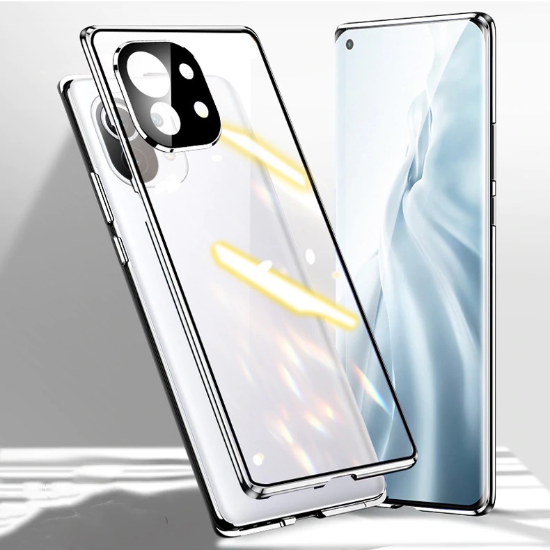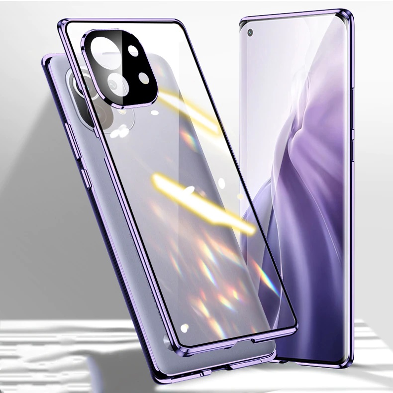 Характеристики магнитного чехла со стеклянными задней и передней панелями и защитой для блока камер для Xiaomi Mi 11: