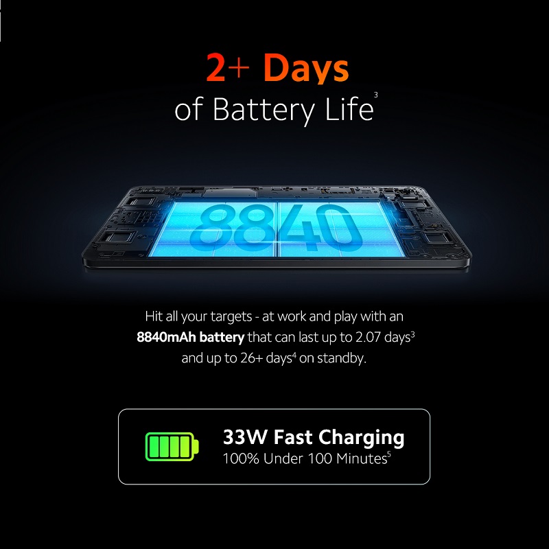 • акумулятор: 8840 мА/г, швидке заряджання 33 Вт (в комплекті зарядник на 33 Вт),