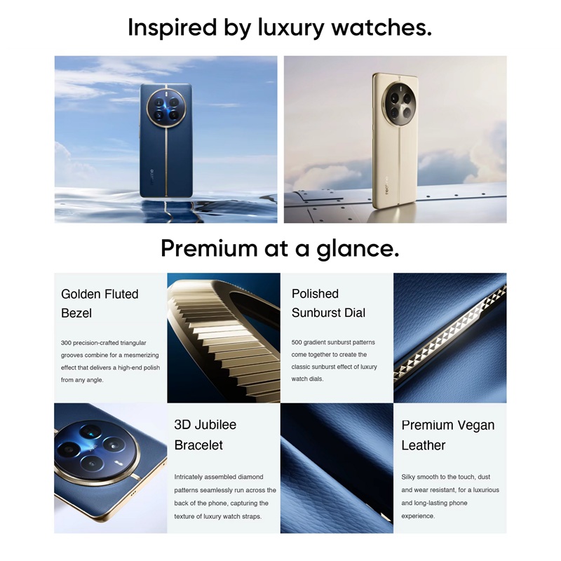 преміальний дизайн | 2 SIM-карти | 5G + 4G LTE | Snapdragon 7S Gen 2 | 12 Гб RAM + 512 Гб ROM | екран 6,7'' AMOLED, 10 біт, 120 Гц | 3 основні камери 50 МП + 64 МП + 8 МП | селфі камера 32 МП | акумулятор 5000 мА/г / 67 Вт | сканер відбитків пальців в екрані | Wi-Fi 6, Bluetooth 5.2, GPS | USB Type-C | стереодинаміки | Realme UI 5.0 на базі Android 14 | УКРАЇНСЬКА МОВА, GOOGLE PLAY