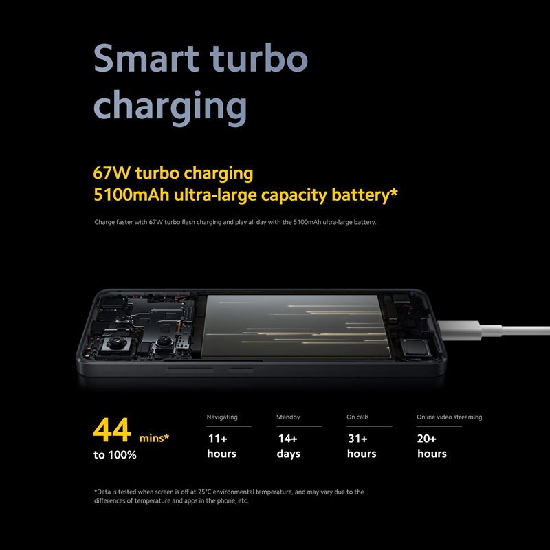 - акумулятор: 5100 мА/г, швидка зарядка 67 Вт (в комплекті зарядник на 67 Вт),