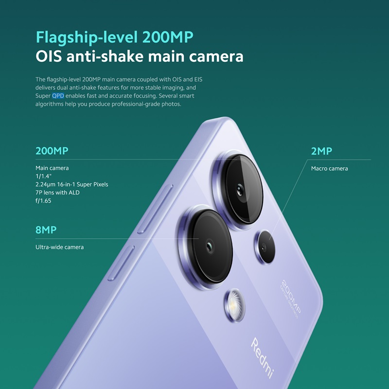 13102401 пластиковий корпус | 2 SIM-карти | 2G GSM + 3G WCDMA + 4G LTE | Helio G99 Ultra | 8 Гб RAM + 256 Гб ROM | екран 6,67'' AMOLED 2400 * 1080, 120 Гц | 3 основні камери 200 МП + 8 МП + 2 МП | селфі камера 16 МП | акумулятор 5000 мА/г, 67 Вт | сканер відбитків пальців | Wi-Fi, Bluetooth 5.2, GPS, NFC / Google Pay, OTG | USB Type-C | MIUI 14 на базі Android 13 | УКРАЇНСЬКА МОВА, GOOGLE PLAY