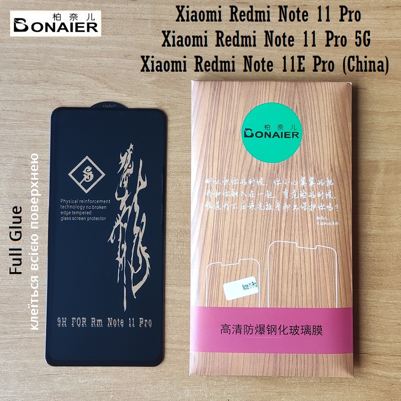Защитное стекло Bonaier (3D Full Glue) для смартфона Xiaomi Redmi Note 11 Pro / Xiaomi Redmi Note 11 Pro 5G / Xiaomi Redmi Note 11E Pro (China), бронированное стекло, клеится к экрану смартфона всей поверхностью, 9H, не влияет на чувствительность сенсора, не искажает цвета, антибликовое покрытие, олеофобное покрытие, стекло с закруглёнными краями 2.5D, 2,5D, 3D, 5D, 6D, прозрачное с чёрной или белой рамкой, набор для подклеивания краёв защитного стекла, Киев, Київ